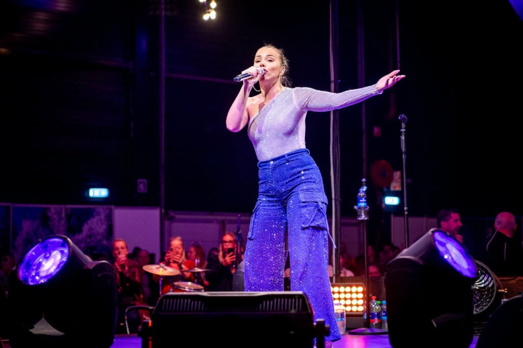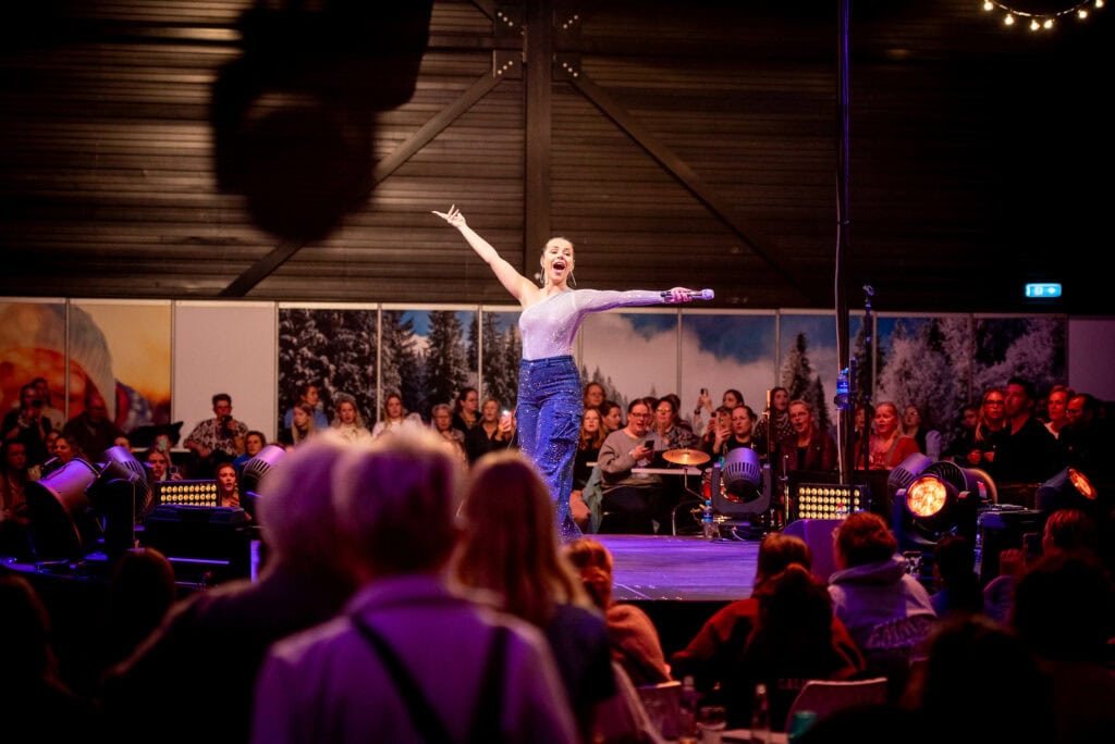 Vervolgens gingen we naar Hardenberg met de limousine en onderweg hadden we lekker koude drankjes en champagne. Toen we daar aankwamen gingen we eerst een hapje eten, daarna gingen we over de winterfair lopen in Hardenberg. Emma kwam optreden in hal zes van acht uur tot half negen. Tijdens haar optreden was ik volop aan het genieten.