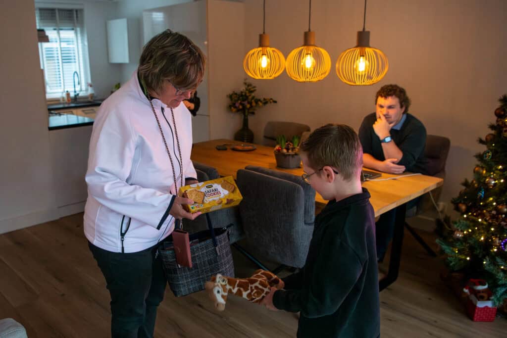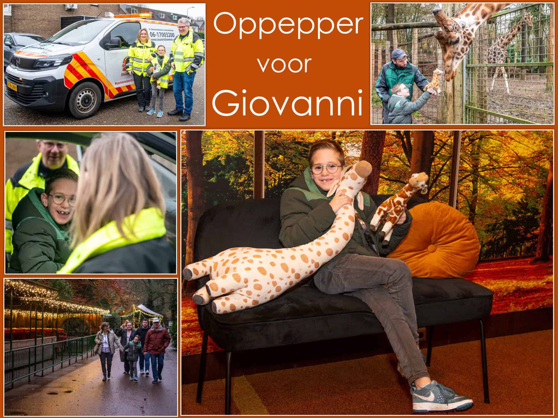 Vrijdag 28 november begon voor Giovanni vol spanning: zijn langverwachte Oppepperdag stond eindelijk op de planning. Zodra hij de deur opendeed voor Hanneke en fotograaf Erik, viel zijn oog meteen op iets bijzonders: uit Hanneke haar handtas stak een giraf, zijn lievelingsdier. De toon van de dag was gezet!