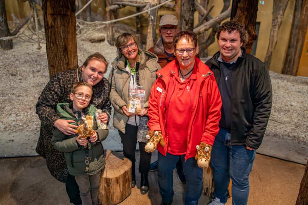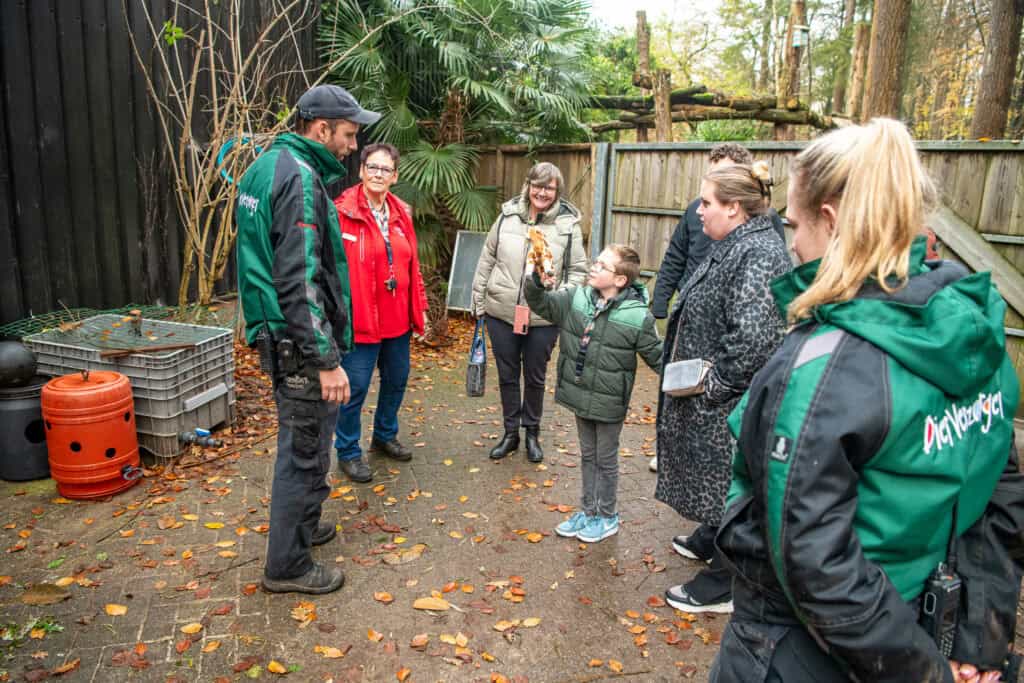 Maar de dag werd nóg mooier: bestemming twee was Dierenpark Amersfoort. Na een gezellige lunch nam gids Cora Giovanni en ons mee op een avontuurlijke tocht langs allerlei dieren. Haar verhalen vol passie maakten het extra speciaal. En toen kwam hét hoogtepunt: een exclusief kijkje achter de schermen bij de giraffen! Giovanni kon ze van héél dichtbij bewonderen. En toen trok de girafknuffel, die hij ’s ochtends had gekregen, de nieuwsgierige blik van een echte giraf…. dat was prachtig !