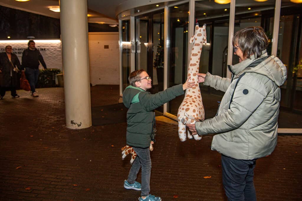 Alsof dat allemaal nog niet genoeg was, had Hanneke nóg een verrassing: een overnachting in het Fletcher hotel in Amersfoort! Giovanni straalde van oor tot oor. En om de nacht helemaal perfect te maken, kreeg hij een megagrote girafknuffel, net zo groot als hijzelf. Het bed was voller dan vol.